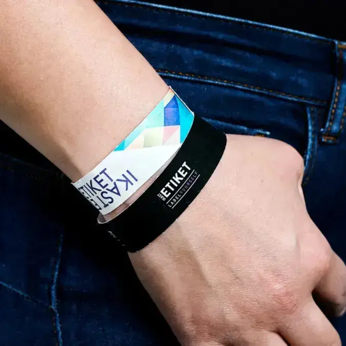 paper wristbands with black print. When designing Full Colour Tyvek Wristbands, you can easily upload a design you've created in, for example, Illustrator or InDesign. If you haven't yet designed your wristbands, you can also do it online.