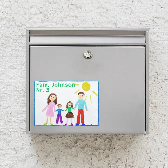 Get a durable and stylish sticker for your mailbox or waste bin. Choose from many colours and fonts, and add up to 6 lines of text. Resistant to all weather conditions.